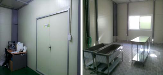 금산 4길 42-1사업장면적 304㎡ 전화번호 055-781-1160 팩스 055-781-1161 이메일 dawul6632@naver.com 명칭 개소 면적 저온저장고 2개소 70㎡ 전처리장 1개소 20㎡ 사무실 1개소 50㎡ 휴게실 1개소 10㎡ 화장실 1개소 5㎡ 소분작업장 1개소 149㎡ 다울친환경 공장 내부 작업경로